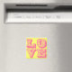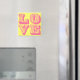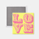 Un imán cuadrado de AMOR rosa brillante. El color de fondo se puede personalizar.