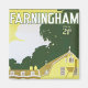 Poster de viajes vintage para excursiones de transporte a Farningham en Sevenoaks, Kent, Inglaterra en un ilustracion de estilo art deco con líneas simplistas y bloqueo de colores.