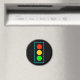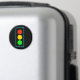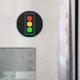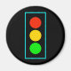 Representación gráfica audaz de la luz indicadora de control de tráfico, en rojo, amarillo y verde, con borde azul claro, sobre fondo negro.