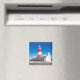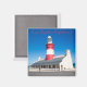 Imán frigorífico con una imagen en color del faro de Cape Agulhas, en el punto más meridional de Sudáfrica, tomado contra el cielo azul.
