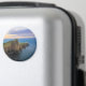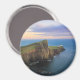 Imán fotográfico redondo con un paisaje con el icónico Neist Point Lighthouse, construido en los acantilados en la costa oeste de la isla de Skye, una de las hebrides en Escocia, al atardecer.
