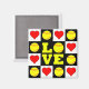 Un adorable imán cuadrado decorativo de frigorífico para jugadores de softball de paso rápido, entrenadores, equipos y fans. Con un patrón negro y blanco, softball amarillo brillante en los cuadrados negros, corazones rojos brillantes en los cuadrados blancos, AMOR impreso en negrita en el centro y un softball en lugar de O.