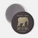 Elegante esmoquin marrón en combinación con elegante y único elefante de oro falso - símbolo de amor, fertilidad y buena suerte. Bodas modernas, simples y únicas salvan el imán de fecha, con nombres personalizados de novia y novio.