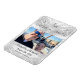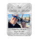 Monogramado católico Faux-Satin Save the Date muestra las iniciales de la novia y el novio mostradas unidas en el centro superior con una cruz a ambos lados. Esto simboliza la unión de la pareja con Cristo y entre ellos. Tu foto se muestra como diseño principal. La parte posterior presenta un bonito fondo de imitación satinado con el nombre inicial del nuevo apellido de la pareja que se muestra en el centro. Todo el texto está en una bonita fuente plateada. Muy elegante.