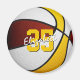 Este fantástico imán temático sobre baloncesto presenta la imagen de un baloncesto realista con paneles de color marrón, blanco y oro alternados - fácilmente personalizar con el nombre y número de camiseta del atleta - de katz_d_zynes