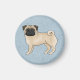 El original ilustracion personalizado de Destei de un adorable perro de raza Pug color abrigo. El perro está parado y mirando hacia el espectador. El color de fondo es azul, con una textura decorativa clara que se puede eliminar si se desea.