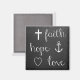 Un fondo de pizarra con las palabras y símbolos para "fe, esperanza y amor"