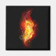 Una brillante pluma de pavo real hecha de fuego y llama sobre fondo negro.