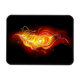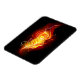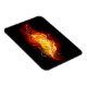 Una brillante pluma de pavo real hecha de fuego y llama sobre fondo negro.