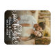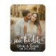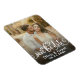 Un imán de fecha de guardado romántico y minimalista que presenta una foto de retrato de sangrado total con letra de caligrafía blanca y florituras en la mitad inferior. Los nombres y la fecha en letra sans-serif blanca y limpia mantienen el diseño pulido y fácil de leer. Un recuerdo atemporal que los invitados querrán exhibir todo el año. Nombres y fecha totalmente editables.