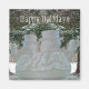 Este imán presenta unas vacaciones felices ondeando el diseño original de los hombres de nieve con fotos de lujo.