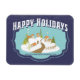Las pequeñas empresas y las grandes empresas pueden mostrar cierta apreciación por el cliente deseando a sus clientes una feliz temporada de vacaciones. Añade el nombre de tu empresa o la dirección web. Tarjeta de vacaciones genérica con una linda escena de nieve con pueblo o barrio de casas.