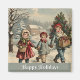 Felices vacaciones, nevados días de invierno, niños dando un paseo.