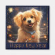 Feliz Año Nuevo de un adorable cachorro dorado.