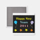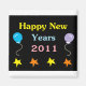 Feliz Año Nuevo 2011. El imán de los años nuevos divertidos tiene globos coloridos y estrellas.