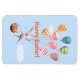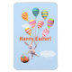 Un imán con mi divertida imagen de Pascua de un lindo conejito con una canasta de huevos de Pascua, sujetándose a un montón de globos a rayas que lo están llevando al cielo. El texto que se puede cambiar dice "¡Feliz Pascua!"