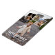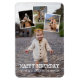 Imán de cumpleaños impreso con cuatro de tus propias fotos en un collage. Como superposición, un original blanco peculiar que dice feliz cumpleaños y, debajo, puedes añadir el cumpleaños que es. Ideal para los cumpleaños de padres y abuelos.