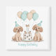 Ilustracion personalizado de perros Standard Poodle con un gorra de cumpleaños rodeando un pastel de cumpleaños y globos. Perfecto para los amantes de las mascotas o los padres de perros.