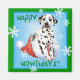 Celebra la temporada navideña con un lindo cachorro dálmata sentado en un sombrero de Santa Faja entre copos de nieve y las palabras: ¡Feliz cumpleaños! Gran idea de regalo de vacaciones para la familia y amigos amantes de Dal.