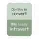 No tiene nada de malo ser introvertido. Dar a la gente que quiere hacerte más extraverso un mensaje cortés con este lema que dice: "No intentes convertir este feliz introvertido"