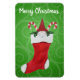 Este imán flexible tiene un patrón giratorio verde con un pequeño gnomo con barba blanca en la parte superior de un Navidad rojo y blanco que se abastece junto con dos latas de caramelo y hojas huecas. Personalizar el texto de Feliz Navidad con la plantilla.