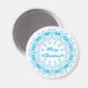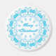 Imán Feliz Navidad redondo de nieve invierno blanco azu