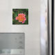 Este imán presenta una rosa rosada bonito que brilla sobre un fondo verde oscuro. Grandes favores para recepciones de boda, aniversario y compromiso.