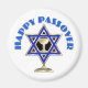 Happy Passover presenta la Estrella Judía de David y la copa de vino lista para las oraciones y cuatro preguntas.
