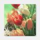 Regalos temáticos de Semana Santa y Primavera con una exposición de encantadores Tulipanes de primavera en melocotón, verde naranja y blanco.