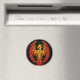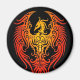 Este diseño de fénix rojo y amarillo está decorado con corrientes tribales y patrones de puntos. Las alas simétricas se extienden desde cada lado del patrón, mientras que la cola cae hacia el centro formando un punto en la base. Las líneas de negrita se resaltan, lo que crea un brillo sutil en la superficie. Este fénix agresivo y elegante se sitúa sobre un fondo negro puro que crea un bonito y elegante diseño imán.