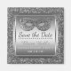 Haz tu propio elegante fiesta de máscaras Salve el imán de plata de fecha- Hace un gran favor de fiesta personalizado para los amigos y la familia. El falso marco metálico metálico en el centro dice 'Save the Date' con el nombre personalizado debajo en un guión elegante y 'Masquerade Fiesta' con fecha personalizado en letras de color gris y plata. En la parte superior hay una falsa máscara metálica de bola de máscaras de máscaras de máscaras de máscaras de máscaras plateadas o la máscara fiesta Mardi Gras. En el purpurina falso plateado con lujosos rollos metálicos de plata en las esquinas. Perfecto para elegante fiesta de máscaras para adultos, celebración del Mardi Gras, Dulces 16 bailes de máscaras, elegante fiesta de disfraces de Halloween, fiesta de cumpleaños 16 en negro y plata para chicas y cumpleaños de quinceanera purpurina de plata. Tenemos invitaciones coordinadas a fiestas de mascaradas, así como muchos otros imanes de Save the Date en nuestra tienda Zazzle.com/angela65.