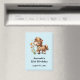 Imán de guardar la fecha de fiesta con una adorable ilustración. Un pequeño pony marrón comiendo margaritas felizmente.