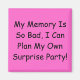 Mi memoria es tan mala que puedo planear mi propio fiesta sorpresa.