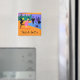 Este Personalizable Retro Urban Rooftop Fiesta Magnet es intoxicante en sus detalles. El diseño personalizado presenta el tipo de fiesta de cócteles extremadamente sofisticado que normalmente sólo se ve en películas de los años 60. Hay mucho para los asistentes a la fiesta. Desde la comodidad de un apartamento ático, los huéspedes disfrutan de las vistas y del ambiente. La iluminación crea un ambiente y podemos ver las siluetas oscuras de una pareja atractiva bailando la cha-cha. En el suelo hay un reproductor de discos morado, portátil, a los pies de la pareja de bailarines. Hay varios álbumes en las cercanías. Incluso con la iluminación tenue que hace que prácticamente todo aparezca en tonos violetas, azules y negros, se puede decir que todo el mundo está vestido a la perfección. Detrás de la pareja cubierta, bailando, hay un caballero vestido con un traje negro que sostiene una copa de martini. Está hablando con una belleza de cabello oscuro que está parado cerca de una de las paredes de vidrio del suelo al techo. Desde un portalámparas, una sola bombilla está proyectando un resplandor romántico sobre la escena. Lo único que falta es la lámpara. Hmm... ¿Dónde está la sombra? Está en la cabeza de un hombre mareado que ha llevado al fiesta fuera al tejado del naranja. Está claro que tiene algunos buenos movimientos de baile y no tiene miedo de mostrárselos al mundo. Su compañera es una mujer rubia con un vestido rosa brillante. Su espalda es arqueada mientras arroja su martini de una manera desinhibida. Más allá del fiesta, hay un impresionante horizonte verde azulado, con rascacielos y un cielo morado. Si así es como vive la otra mitad, ¡inscríbeme! Personalice este imán para un regalo de primera.