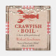 Este diseño rústico presenta un fondo de madera con cinta roja y blanca. Encima de esto hay una textura de burlap con un serif rojo y negro y un tipo de letra manuscrita que es todo personalizable a tu evento, ya sea un hervidero de cangrejo, langosta, marisco o hierba de pescado. ¡Celebra tu graduación, cumpleaños, compromiso o cualquier evento de estilo! ¡Hace un gran favor a la fiesta!