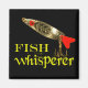 Imán de pesca divertida para todos los pescadores y pescadores. Pescado Whisperer en texto con un señuelo de pesca a todo color cerca de la parte superior.