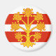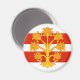 Magnet with design with a flag of historic county of Westmorland, in England, Great Britain; white and red striped flag with golden heraldic apple tree in the center
