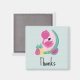 Gracias imán con un lindo ilustracion de un flamingo rosa con algunas sandías y piñas. Color rosa y verde. Summery y tropical. El fondo es de color verde pálido con puntos de polka blanco.