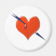 Un corazón rojo perforado por una flecha con una sola gota de sangre