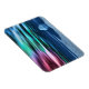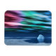 En la bahía de una tierra congelada flota un gran iceberg en el frío mar azul. Los copos de nieve y las estrellas mofan la escena, y en el cielo la aurora brilla en tonos rosas, lavanda, verde y azul.