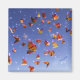 Un torrente de mariposas brillantes de joyas que zumban por el cielo azul de verano en medio de una nube de semillas de diente de león, con un par de libélulas zumbando a su lado.