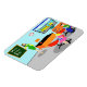 ¡Este imán flexible de profesores retro de personalizable recibe una A+! Este estilo de los años 60, arte minimalista, dibujo personalizado, cuenta con un salón de clases vibrante y elemental con todo lo necesario para moldear las mentes del futuro. Es el tipo de espacio donde se valoran las ideas y se elogia la creatividad. En la parte delantera del aula moderna de mediados de siglo, vemos al profesor más popular de la escuela parado frente a un pizarrón. El profesor lleva puesto un vestido verde y amarillo brillante, con zapatos amarillos. Aunque el reloj de la pared azul nos dice que es casi hora de que suene la campana final, todavía parece fresca como una margarita. Su cabello negro se mantiene en su lugar con una banda amarilla y sus lentes mod, rojos, la ayudan a reducir cualquier travesura en la fila trasera. Ella está descansando una mano sobre su naranja y su escritorio negro. El escritorio limpio es un homenaje a sus excelentes habilidades organizativas. Lo único en el escritorio es una manzana roja brillante, que sin duda le fue dada por una estudiante adoradora. Hablando de estudiantes... También podemos ver un par de esos. Desde nuestro punto de vista, podemos ver a dos entusiastas estudiantes sentados detrás de sus pupitres de escuela rojos. Hay un chica rubio con una cola de pontón hinchable con un vestido rosa brillante. Junto a ella hay un muchacho de pelo oscuro que lleva una camisa verde y jeans azules. Cada niño sostiene un brillante libro de escuela azul. Están tan ansiosos por saber que ni siquiera han notado que es casi hora de que suban al autobús escolar amarillo que vemos esperándolos a través de las persianas abiertas en la ventana del aula. Debajo de la ventana, hay una biblioteca naranja con libros coloridos y un globo del mundo. No te preocupes, chicos. Mañana regresarás a tus lugares con caras brillantes y brillantes. El nombre de la pizarra es personalizable.