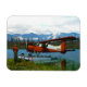 Un piloto de bush se encuentra cerca de su avión de Havilland Canada DHC-2 Beaver a la orilla de un lago en el extremo norte; montañas y árboles están a lo lejos. Esta imagen se derivó, en parte, de una foto del Servicio de Pesca y Vida Silvestre de Estados Unidos.