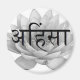 Esta imagen retrata la simbólica flor de loto con la palabra sánscrita Ahimsa. Ahimsa significa no violencia y paz para todos los seres vivos.