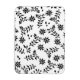 Un diseño clásico con flores, brotes y hojas. Un diseño delicado, femenino y elegante. En blanco y negro clásico.