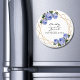 imán boda. El diseño presenta un elegante patrón de marco geométrico purpurina de oro falso. Rodeado de rosas azul acuático y vegetación en dos esquinas. Personalice esta plantilla para agregar su información. Haga clic en el personalizar para realizar más cambios. Todo es personalizable. Necesita personalización o preguntas y, a continuación, póngase en contacto con el diseñador Sandy en admin@giftsyoutreasure.com