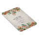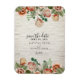Una boda salva el imán de fecha con una imagen de flores y vegetación en la parte superior e inferior sobre un fondo de ladrillo blanco.