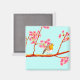 Los senos rojos rojos, encantadores, se colocan en una rama floreciente. Ilustracion de Allison Tarell.