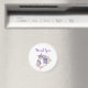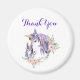 Un imán de agradecimiento con un elegante ilustracion acuarela que incluye una madre acuarela y un bebé unicornio con un mané morado y un forelock. Delicadas flores naranjas rodean al par.