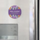 Imán de flores amarillas púrpura Guardar La Fecha con marco redondeado con flores hechas con acuarela elegante. Atmósfera de acuarela púrpura y verde para tu tema de boda creativo y sagrado.